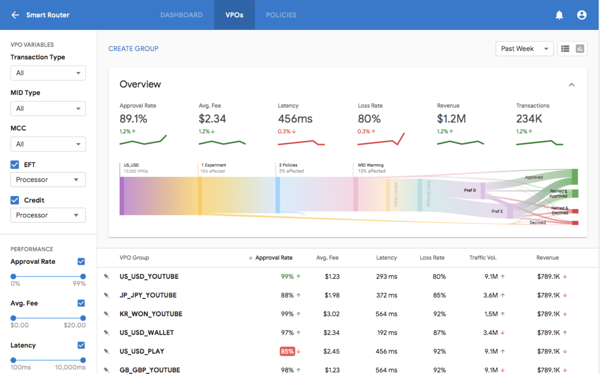 Improve the cost of processing, processor performance, and overall quality by introducing processor competition anchored in auth rates, loss, cost, and latency.